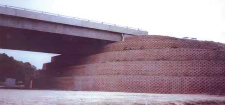 The Flounders / Meadows Bridge was constructed in 1999 and was the first major highway bridge in the USA to use GRS abutments (see Figure 6). The bridge is a two-span road overbridge structure and the abutments are 4.5 metres and 5.9 metres high, (Bathurst 2014).