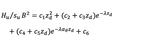 The horizontal force equilibrium Equation 16 for the zd value derived from the solution of Equation 18 (by iteration) gives the dimensionless lateral force capacity as: