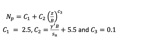 Where Np is a bearing capacity factor which varies with depth, su is the undrained shear strength and B the pile diameter.