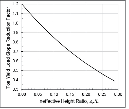 Results from the two analysis procedures are shown in Figure 9. The analyses were carried out for ee/Le ratio of between 0 and 0.5 and the plotted results are for an average over this range. The toe yield capacities were found to be relatively insensitive to the ee/Le ratio. Results from the ineffective depth analysis are shown for values of Re = 1 and 1.2. A factor of 1.2 is recommended for design since using this factor gives a good fit to results from the more correct analysis using integration of the Guo, 2008 LFP forces and moments.