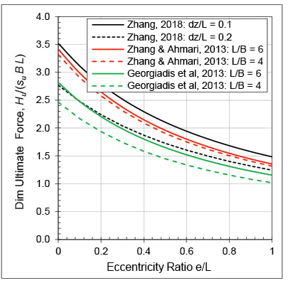 Zhang and Ahmari, 2013 show good agreement between their force versus displacement predictions and a number of test results. Georgiadis et al, 2013 show good agreement between their ultimate capacity predictions and test results.