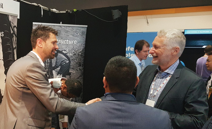 Gavin greeting sponsors at the 20th NZGS Symposium, where he led the technical programme.