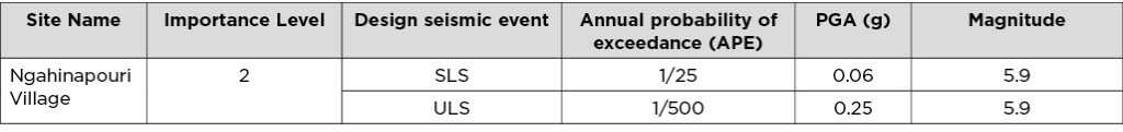 Table 1: Design peak ground accelerations and corresponding magnitudes for geotechnical assessment (MBIE, 2021).