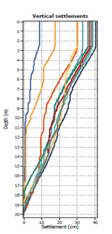 Figure 3: Using settlement graph of 10 CPTs to estimate SCRR treatment soil range.