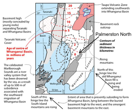 Palmerston North is located to the eastern extent of the Whanganui sedimentary basin, as shown in Figure 2.