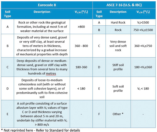 Figure 7: Eurocode 8 & ASCE 7-16 Site Classification Criteria (extract only)
