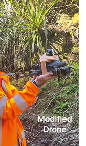 A variety of drones were used to assess the slip, including the innovative use of lights mounted onto a UAV flown within the damaged tunnel to inspect the lining, a first on the KiwiRail Network.