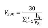 where hi is the thickness of each soil/rock layer i between 0 and 30 m depth, and VS,i is the shear wave velocity of each layer i.