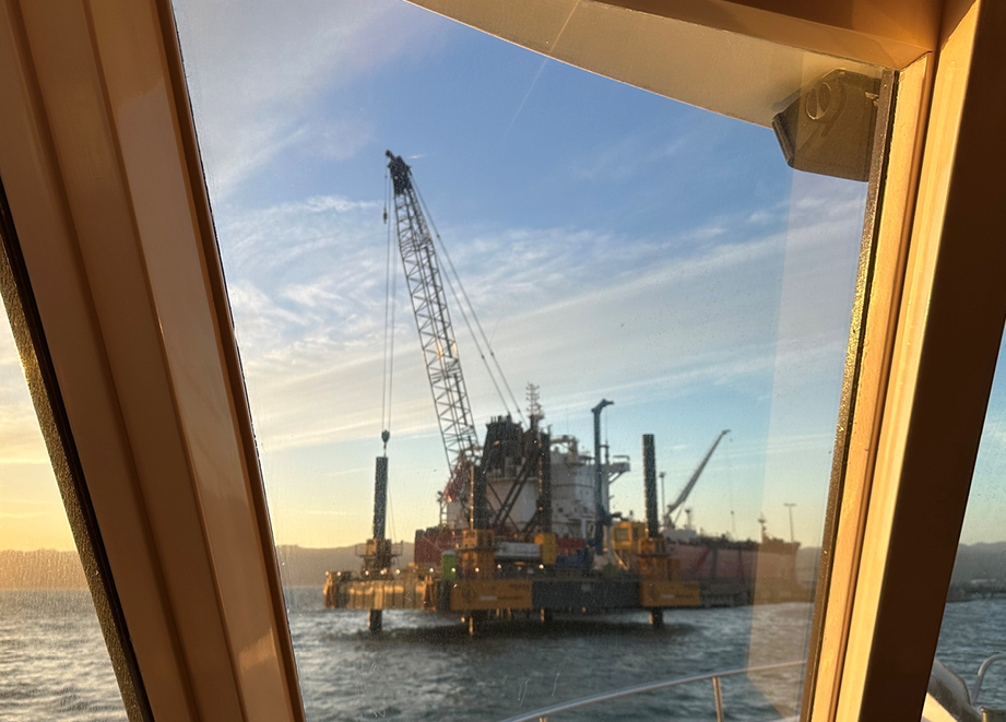 The Seaview Wharf upgrade, a part of the Seaview Energy Resilience Project, aims to strengthen the 50-year-old wharf and pipeline, making it more resilient to earthquakes and severe weather. The Kaikōura Earthquake in 2016 caused significant damage to the wharf, prompting an urgent repair and upgrade to meet international standards for ship berthing and bulk fuel discharge. Liam Hall (Senior Structural Engineer from Holmes Consulting Ltd) and Matthew McKee (from CentrePort Ltd) presented details about the upgrade, with Sweet Georgia anchored in front of the enormous barge platform adjacent to the Seaview Wharf.