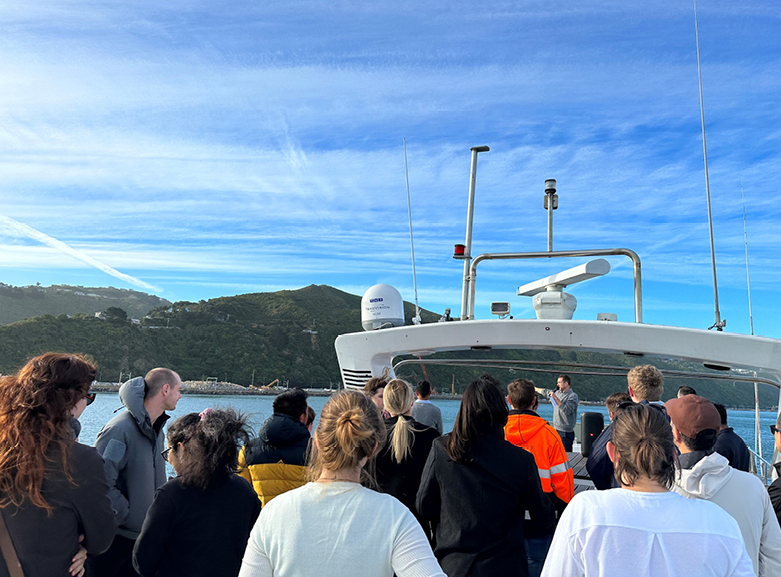 On the evening of 26th March, the Wellington branch hosted a joint harbour cruise with the New Zealand Coastal Society (NZCS). While the charter boat, Sweet Georgia, cruised along the Wellington Harbour, a series of talks took place on “Te Ara Tupua’s Ngā Ūranga ki Poti-One project” and “Seaview Wharf upgrade”. This event was an opportunity for attending members to get a close look at work that’s going on and pose questions on the projects.