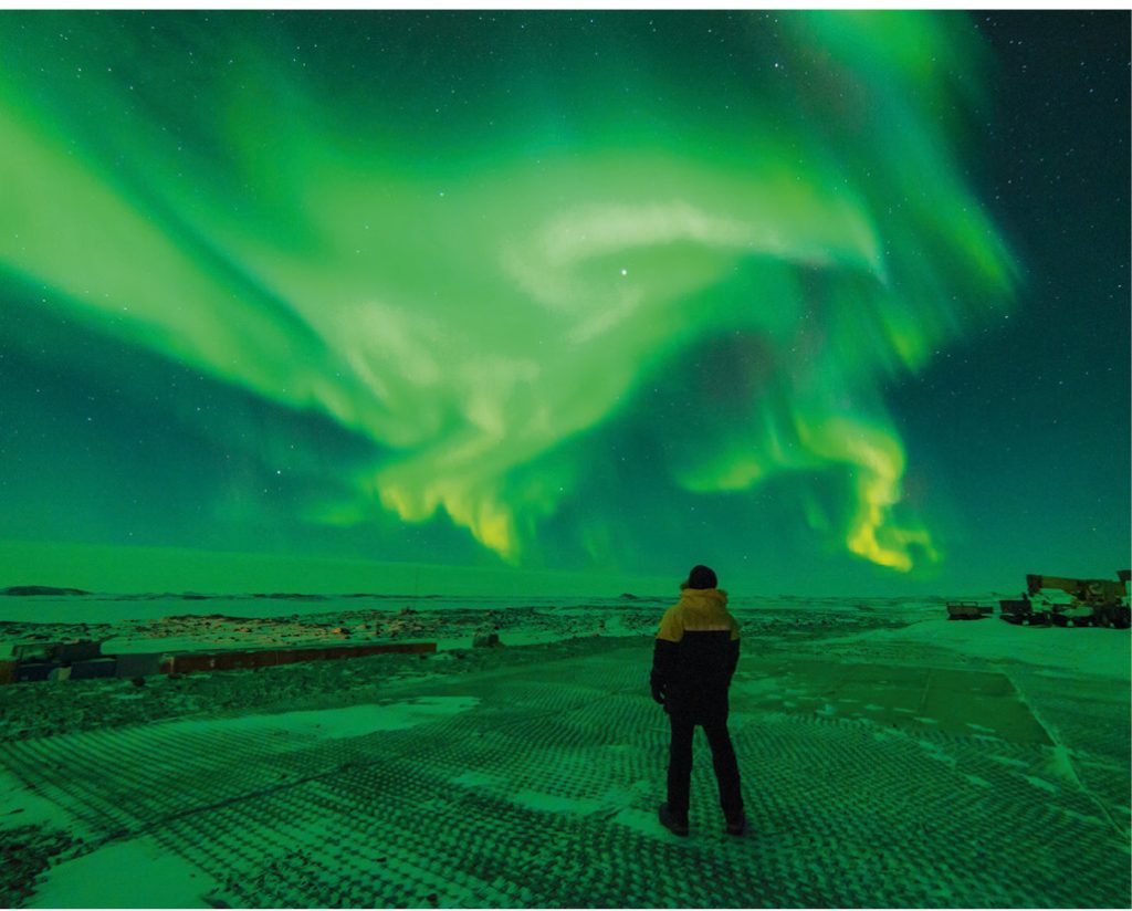 Those willing to brave the temperatures outside got to see auroras overhead throughout the winter, occasionally on their way back to the mess hall for lunch during the darkest months. After everyone had completed their field travel and survival training (including spending a freezing night out in a plastic bivvy bag in -30C overnight temps), groups were able to travel on the sea ice to reach the four field huts spread across the area for recreational overnight trips, and to see the sights of the Vestfold hills. To mark the midwinter solstice, a huge feast and celebration was prepared, and a large hole was cut in the sea ice to prepare for the traditional midwinter swim. Air temperature on the day was -23C, with a water temperature of -1.8C keeping the swims short and sweet.